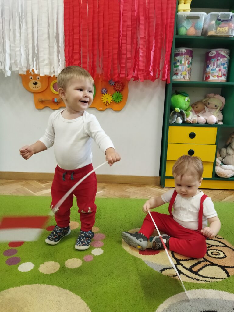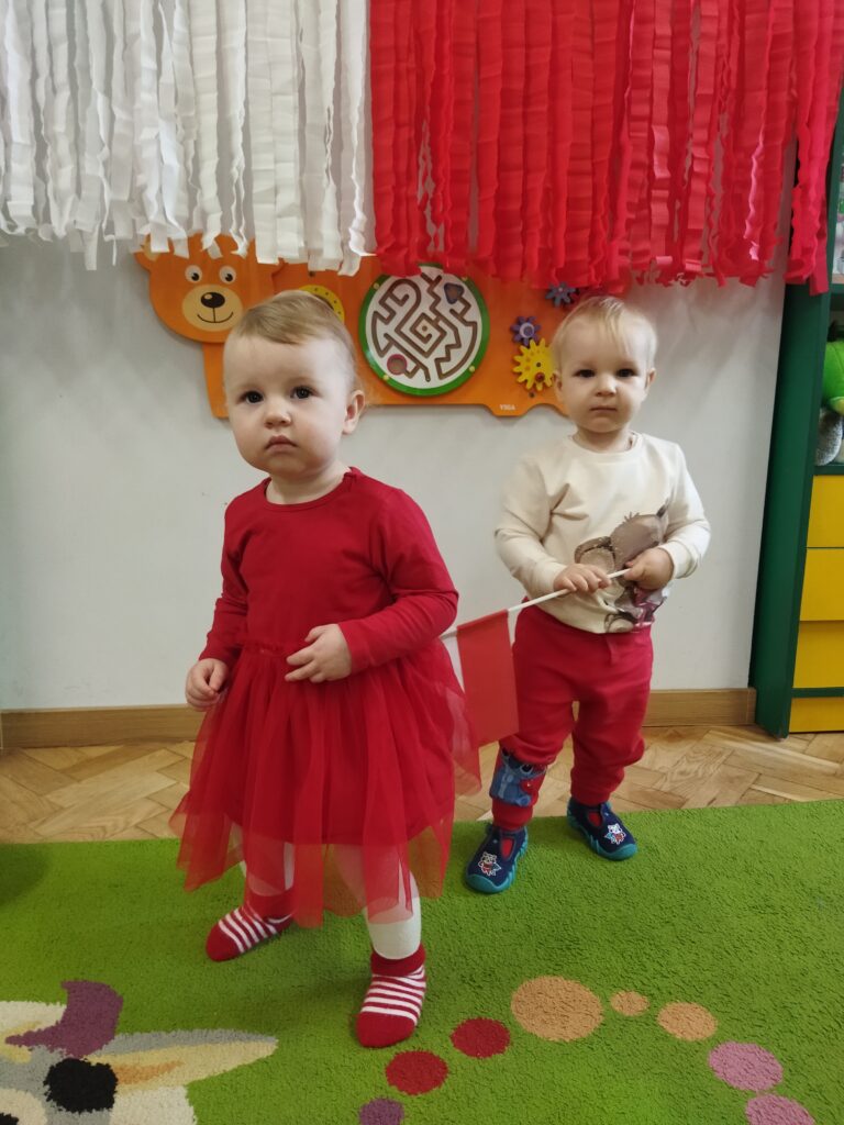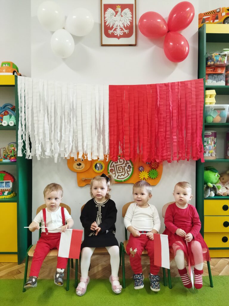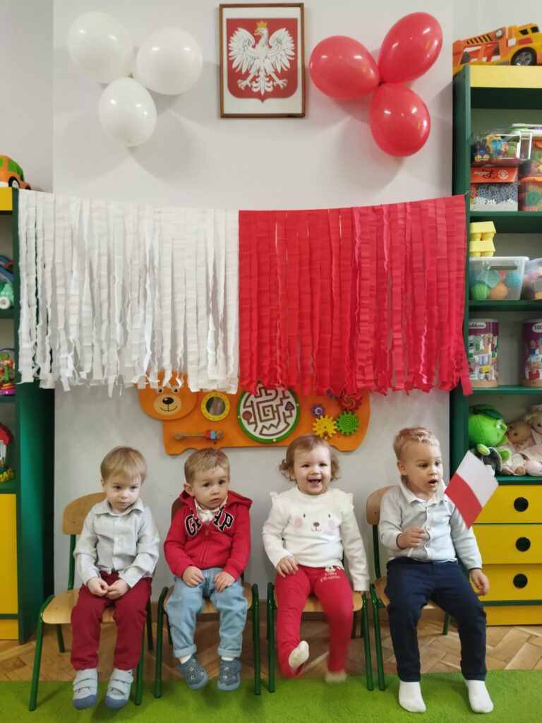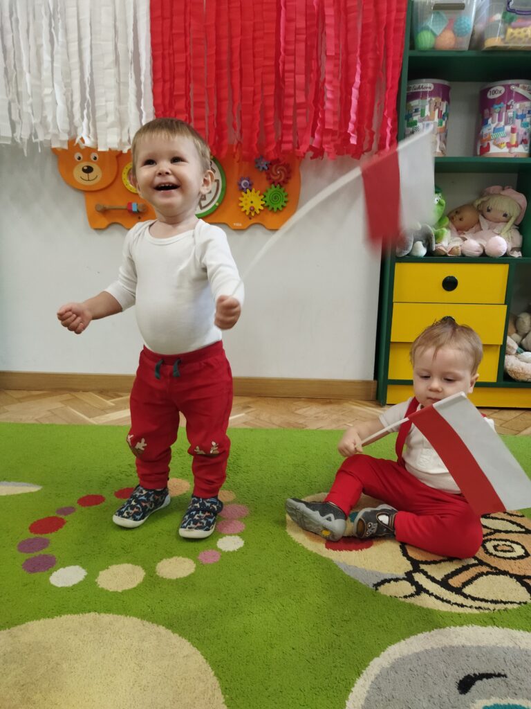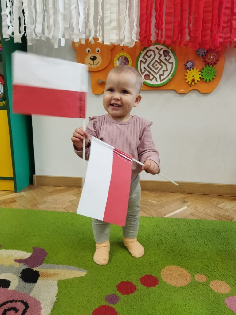 Mimo, że jesteśmy jeszcze mali z dumą uhonorowaliśmy nasze narodowe święto 11 Listopada – Dzień Niepodległości. Poznaliśmy nasze barwy narodowe i godło. Będziemy dumnymi Polakami .