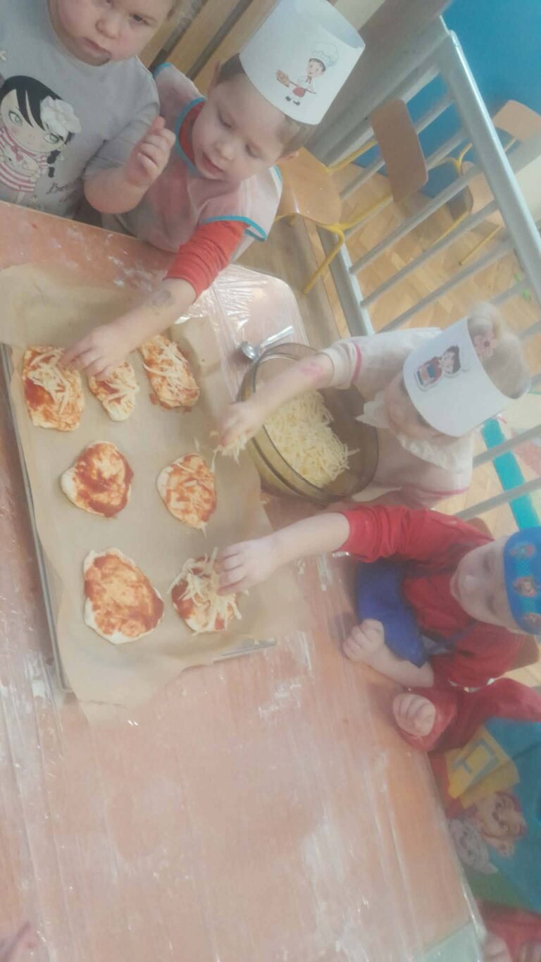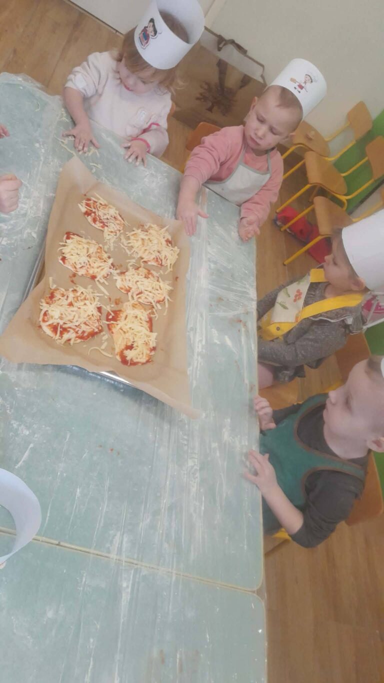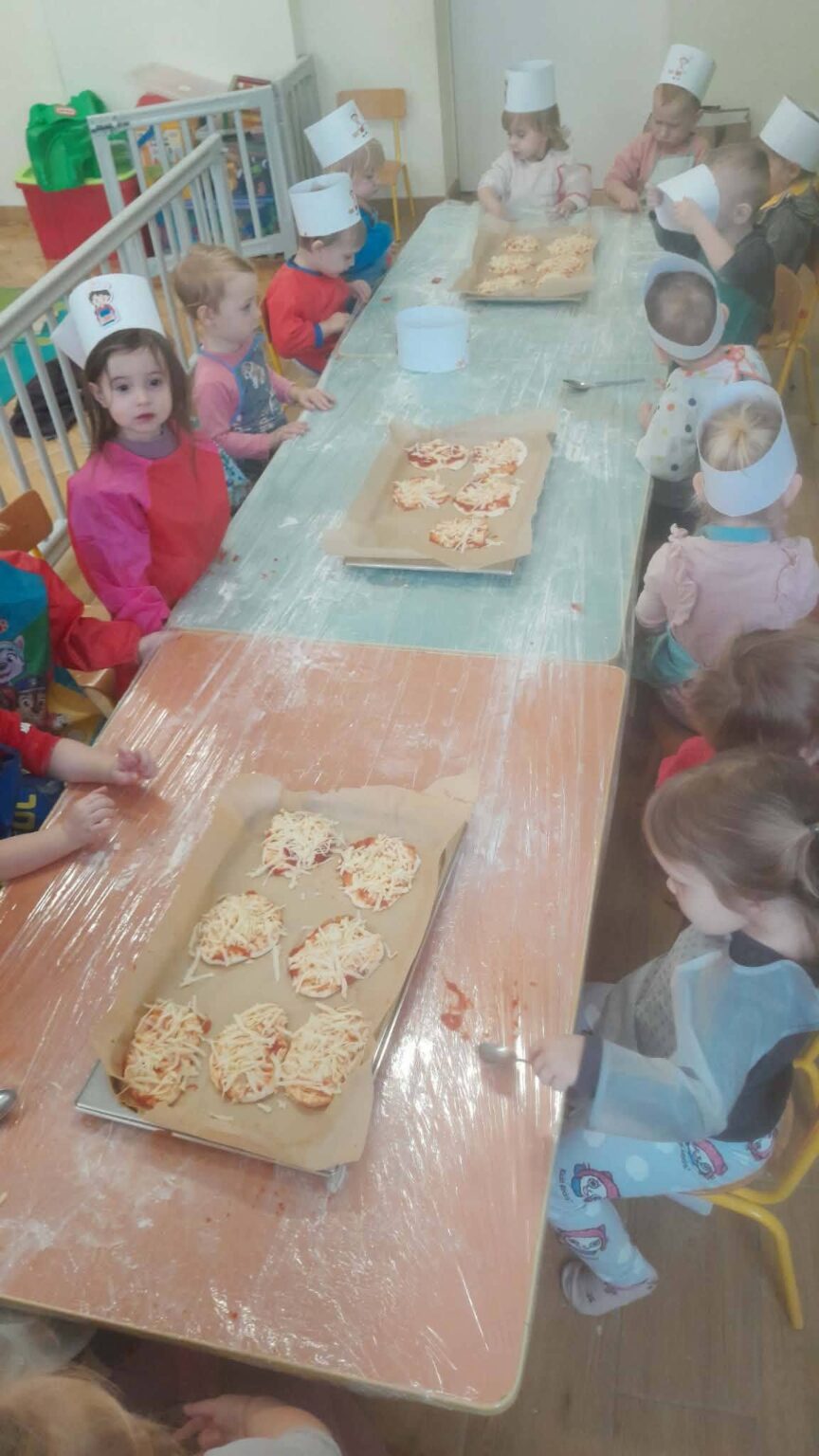 Mali kucharze w akcji . Tworzymy własne pizze – było kolorowo, radośnie i bardzo smakowicie! Poznajemy świat smaków i ćwiczymy małe rączki!