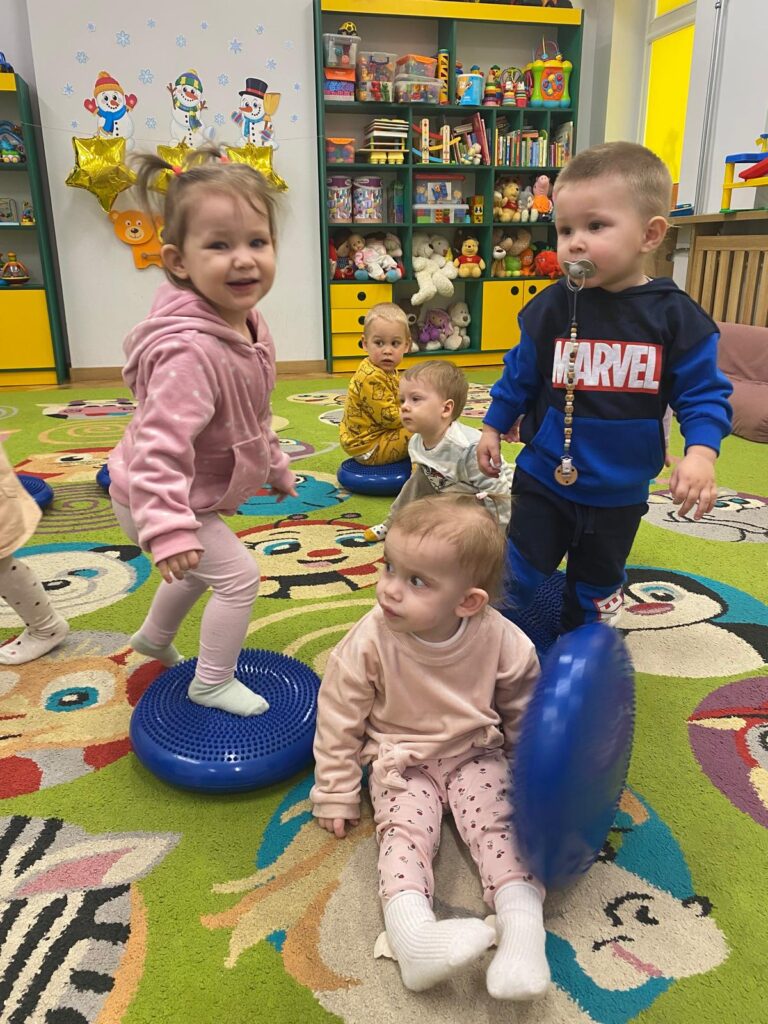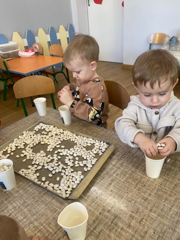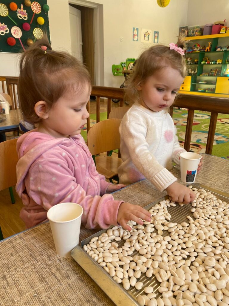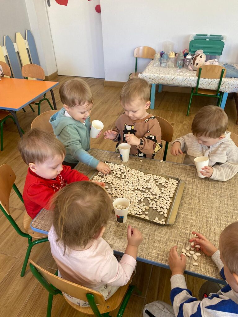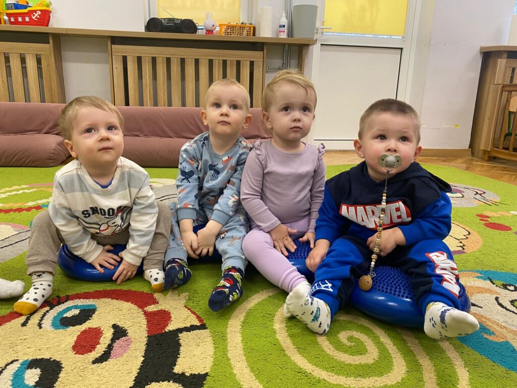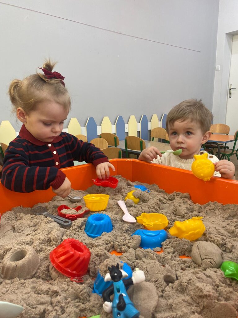 Ten tydzień był bardzo ciekawy. Mieliśmy zabawy rozwijające w sposób zintegrowany nasze zmysły wzroku, dotyku i słuchu. Rysowaliśmy palcem w ryżu, nasypywaliśmy do kubeczków makaron i fasolę (ćwiczenia chwytu precyzyjnego). Rozwijaliśmy zmysł równowagi na piłkach sensorycznych i lepiliśmy babki i kule z piasku kinetycznego.