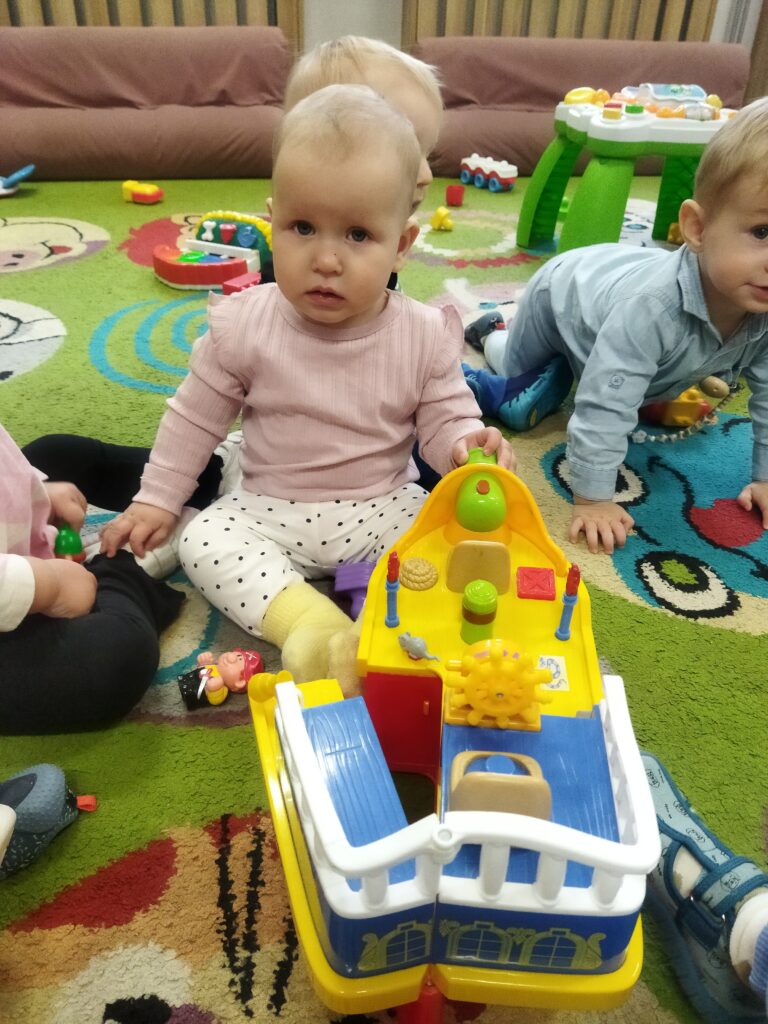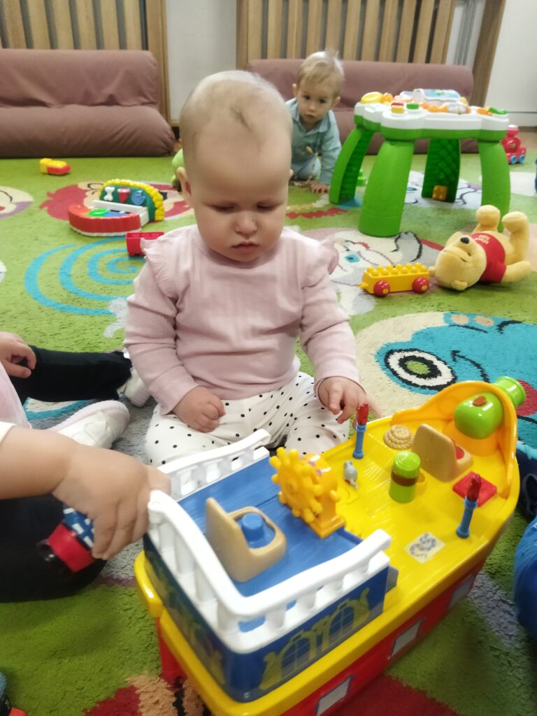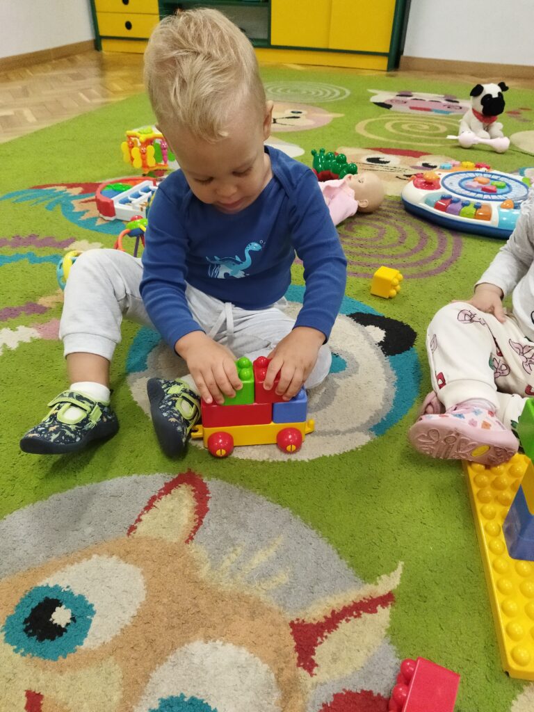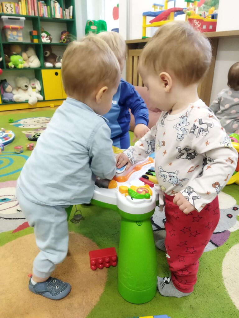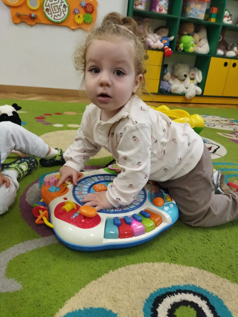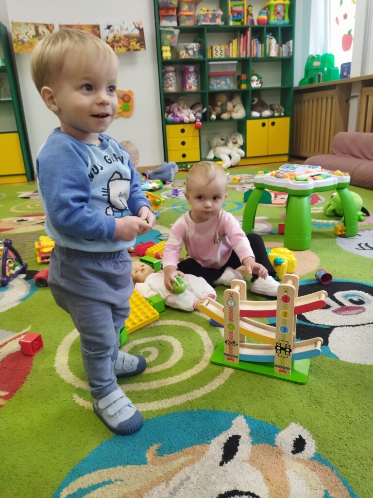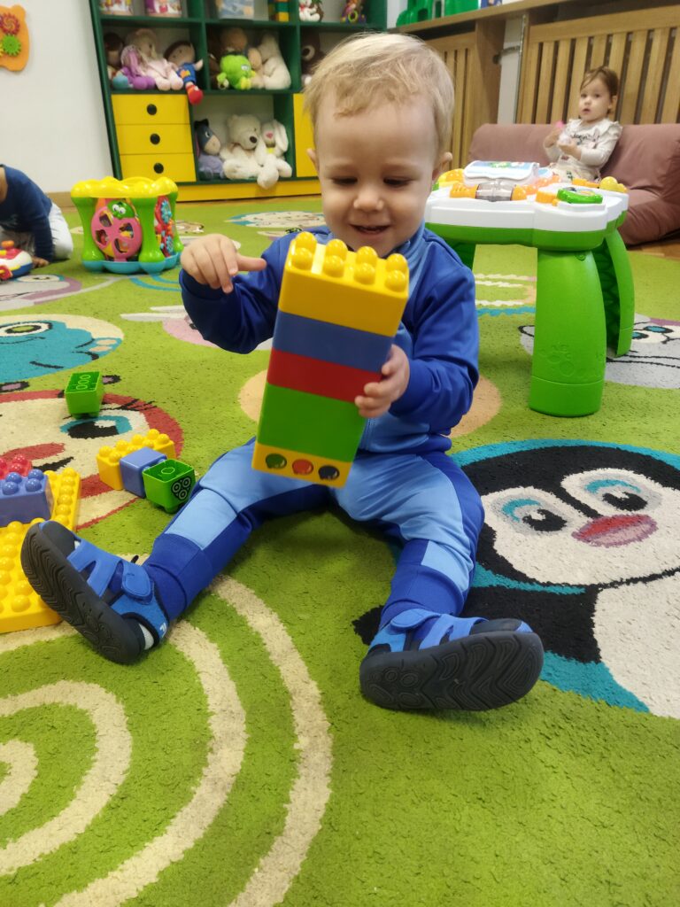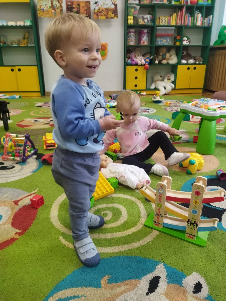 Skończył się pierwszy miesiąc w którym przyzwyczajaliśmy się do nowego miejsca. Radzimy sobie coraz lepiej. Bawimy się wspólnie, tańczymy, słuchamy muzyki. Uczymy się ładnie siedzieć przy stolikach w trakcie posiłków i spokojnie leżakować. Czasami przytrafiają się nam jeszcze drobne smuteczki ale szybko mijają. W żłobku jest wesoło i dobrze się bawimy.