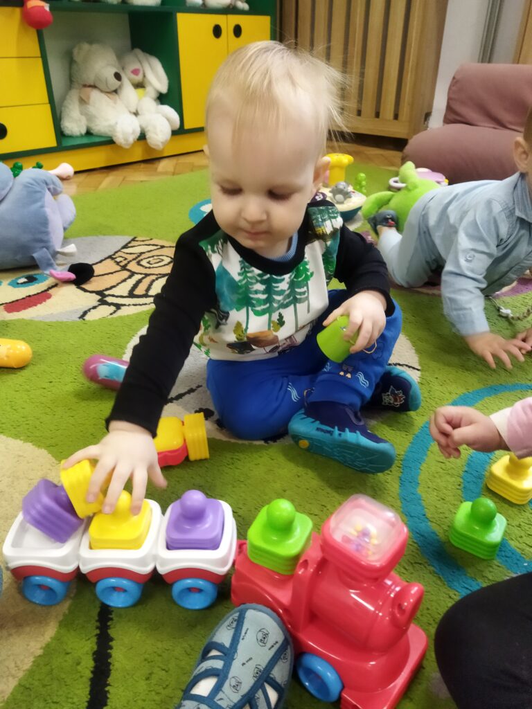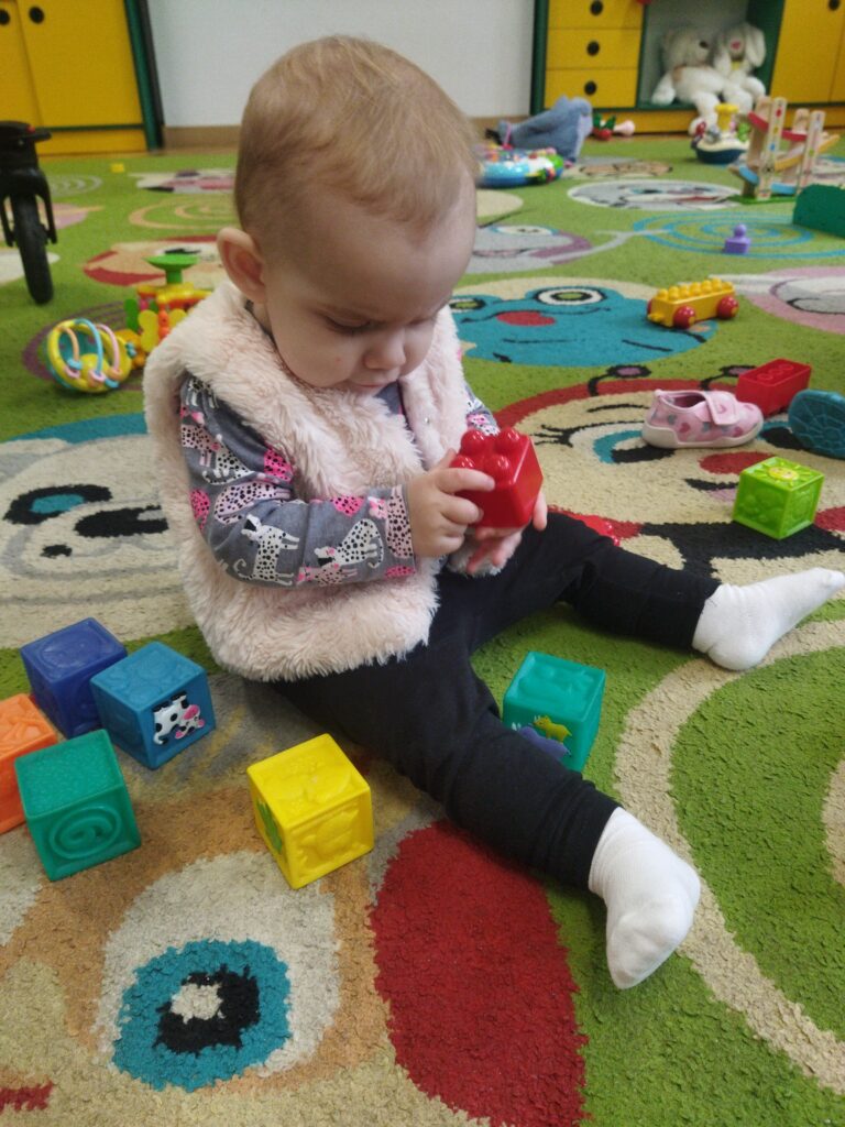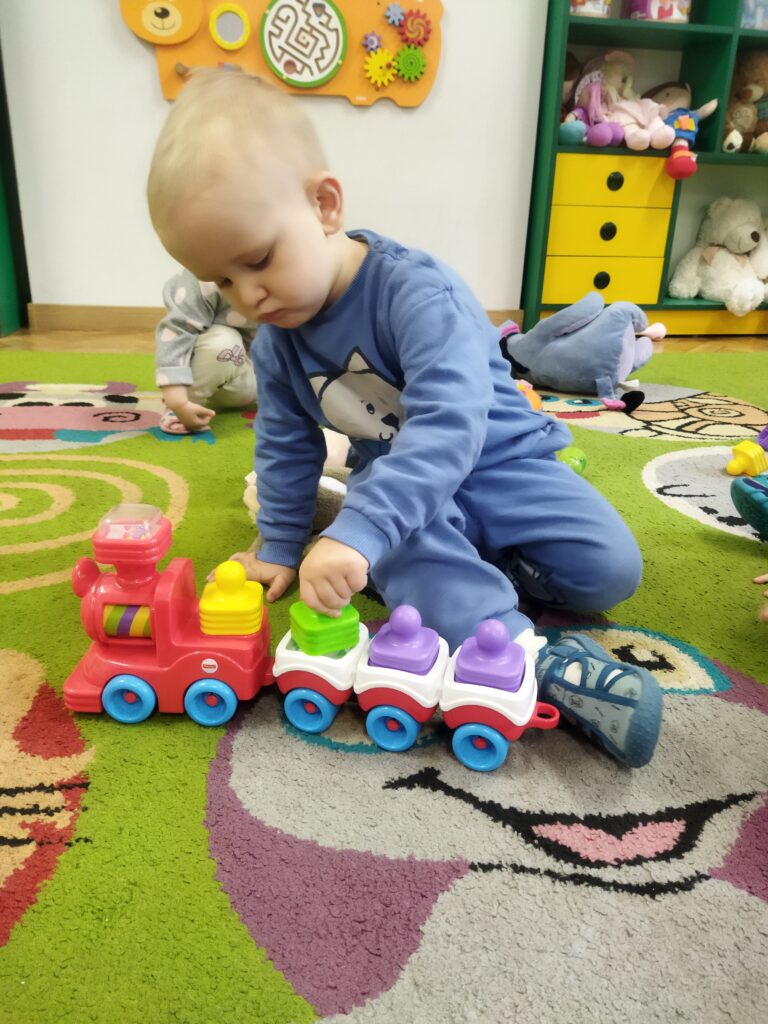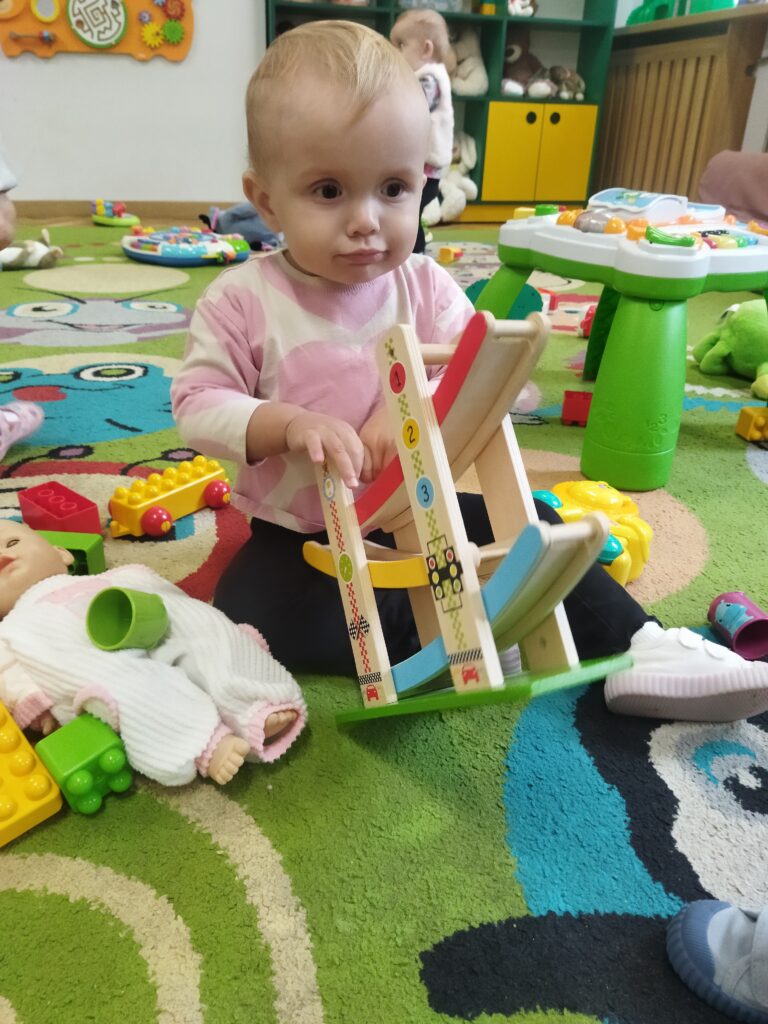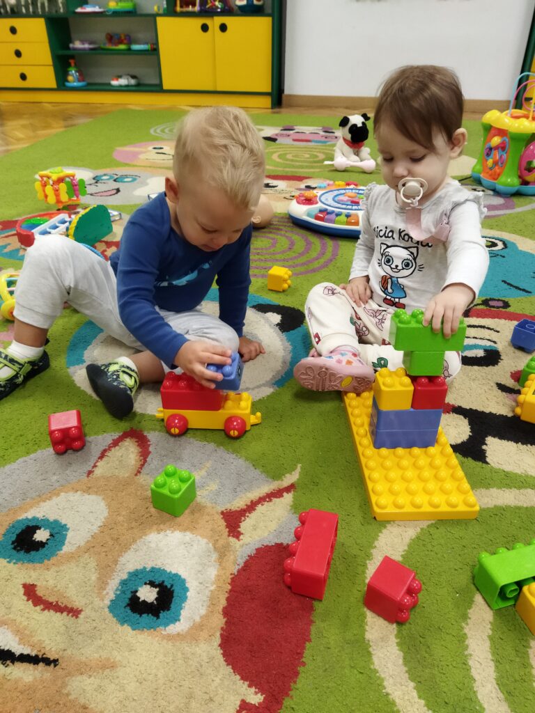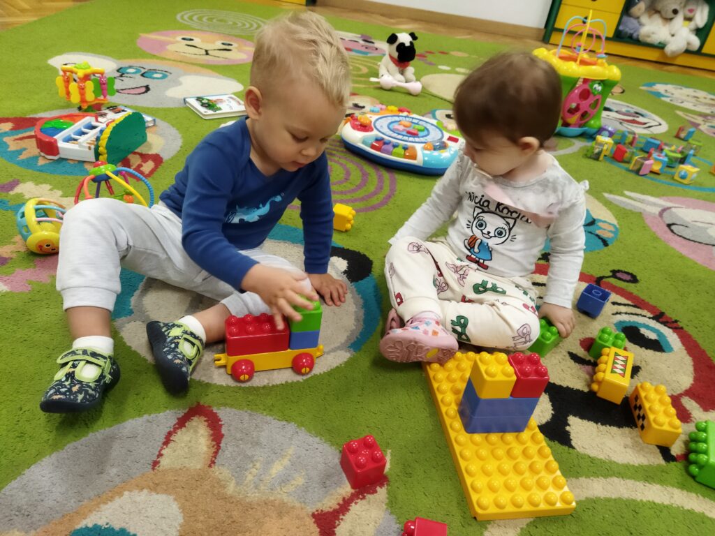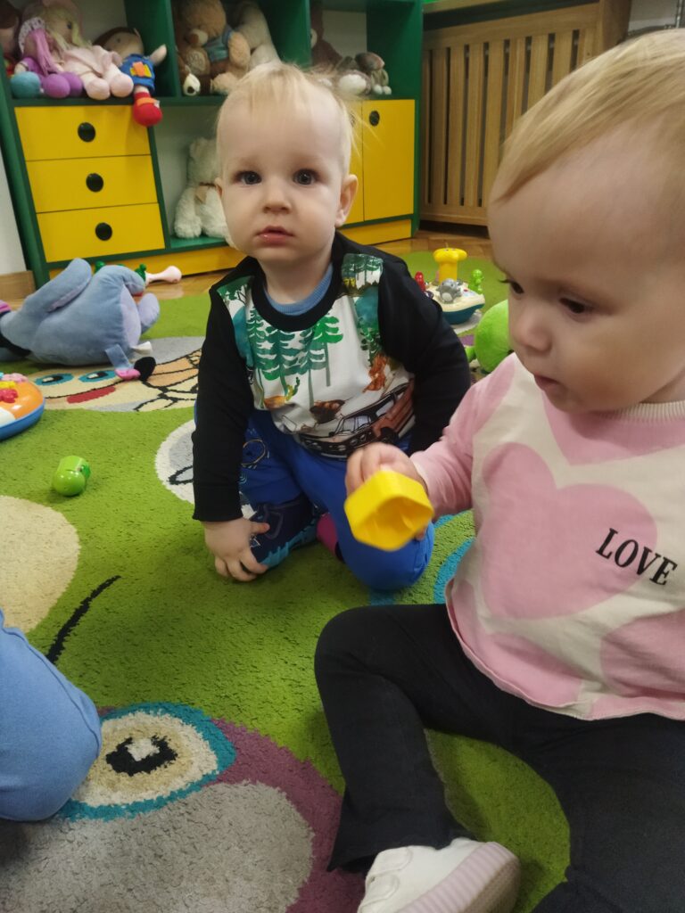 Skończył się pierwszy miesiąc w którym przyzwyczajaliśmy się do nowego miejsca. Radzimy sobie coraz lepiej. Bawimy się wspólnie, tańczymy, słuchamy muzyki. Uczymy się ładnie siedzieć przy stolikach w trakcie posiłków i spokojnie leżakować. Czasami przytrafiają się nam jeszcze drobne smuteczki ale szybko mijają. W żłobku jest wesoło i dobrze się bawimy.
