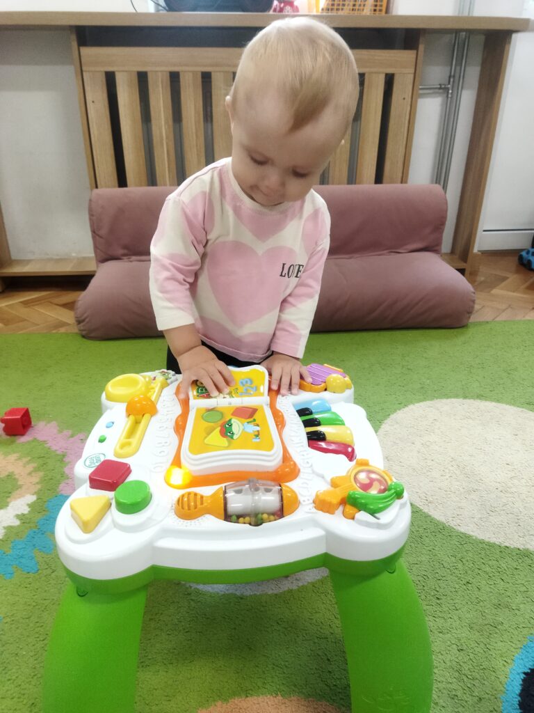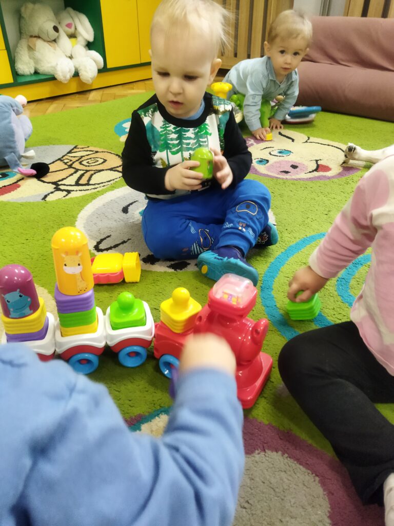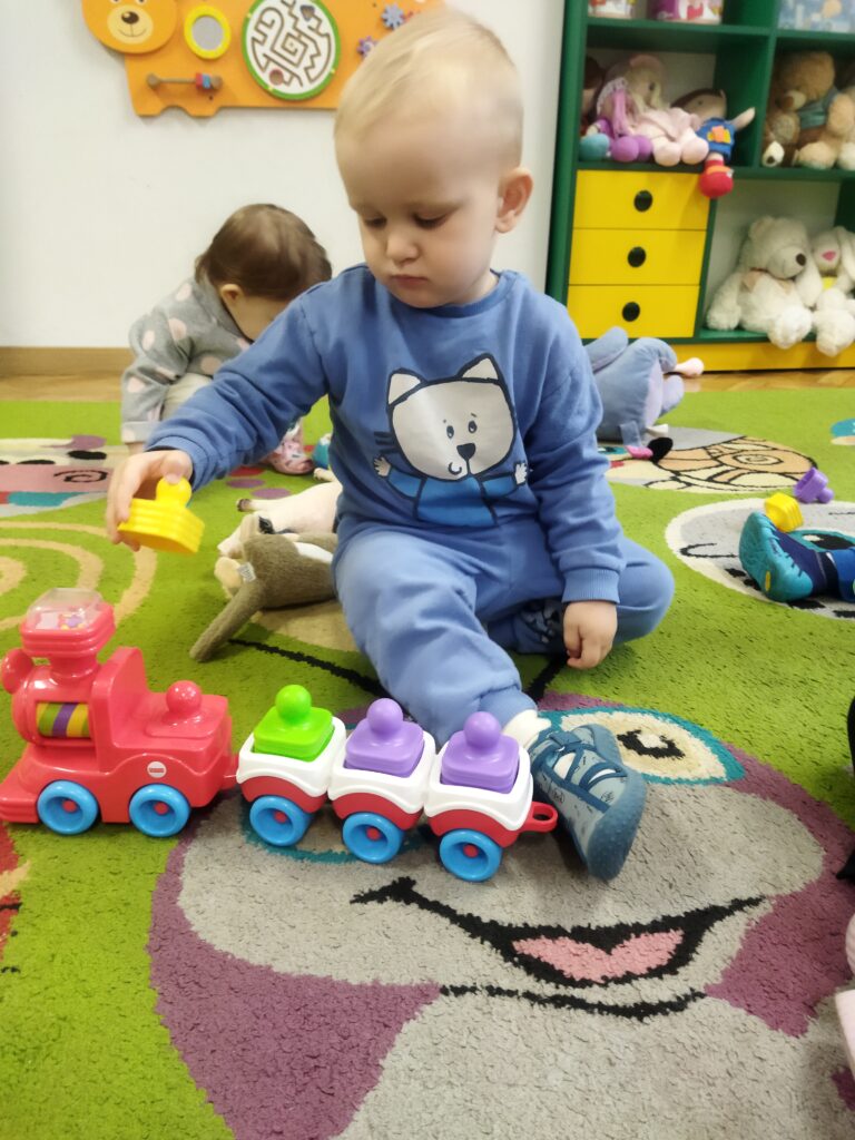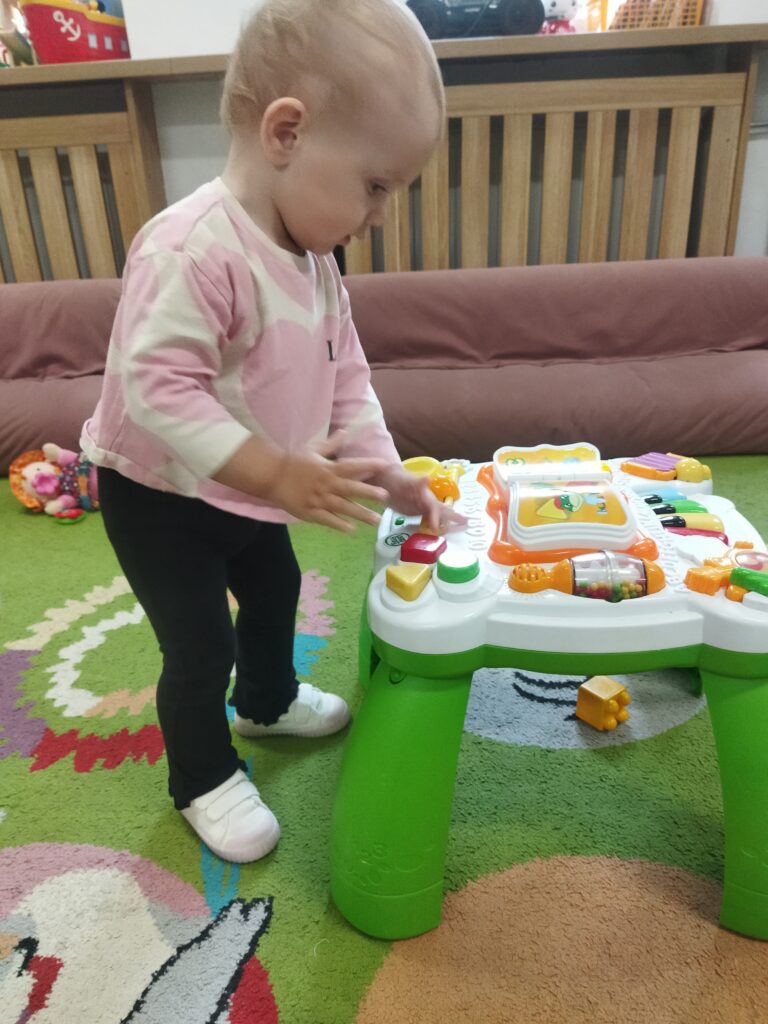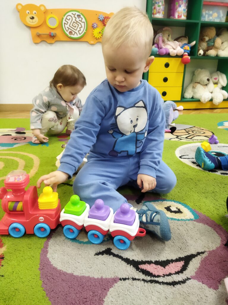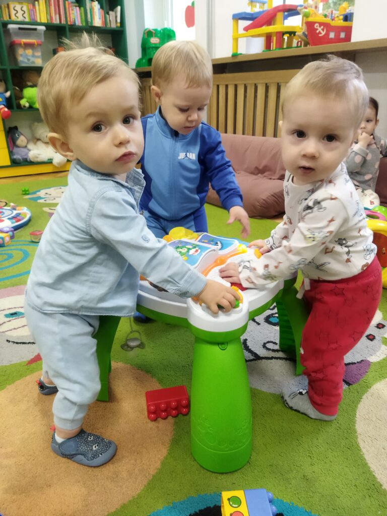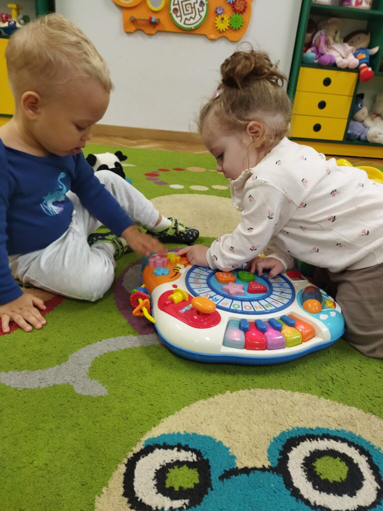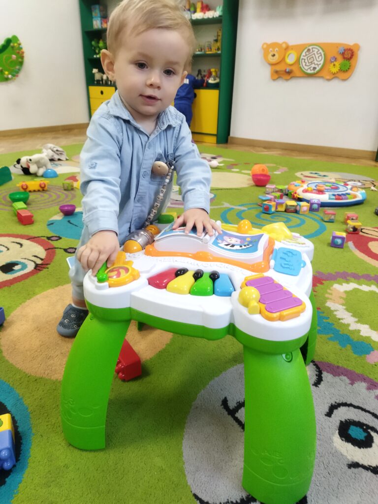 Skończył się pierwszy miesiąc w którym przyzwyczajaliśmy się do nowego miejsca. Radzimy sobie coraz lepiej. Bawimy się wspólnie, tańczymy, słuchamy muzyki. Uczymy się ładnie siedzieć przy stolikach w trakcie posiłków i spokojnie leżakować. Czasami przytrafiają się nam jeszcze drobne smuteczki ale szybko mijają. W żłobku jest wesoło i dobrze się bawimy.