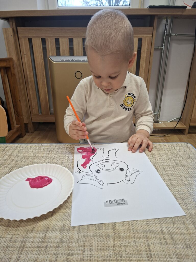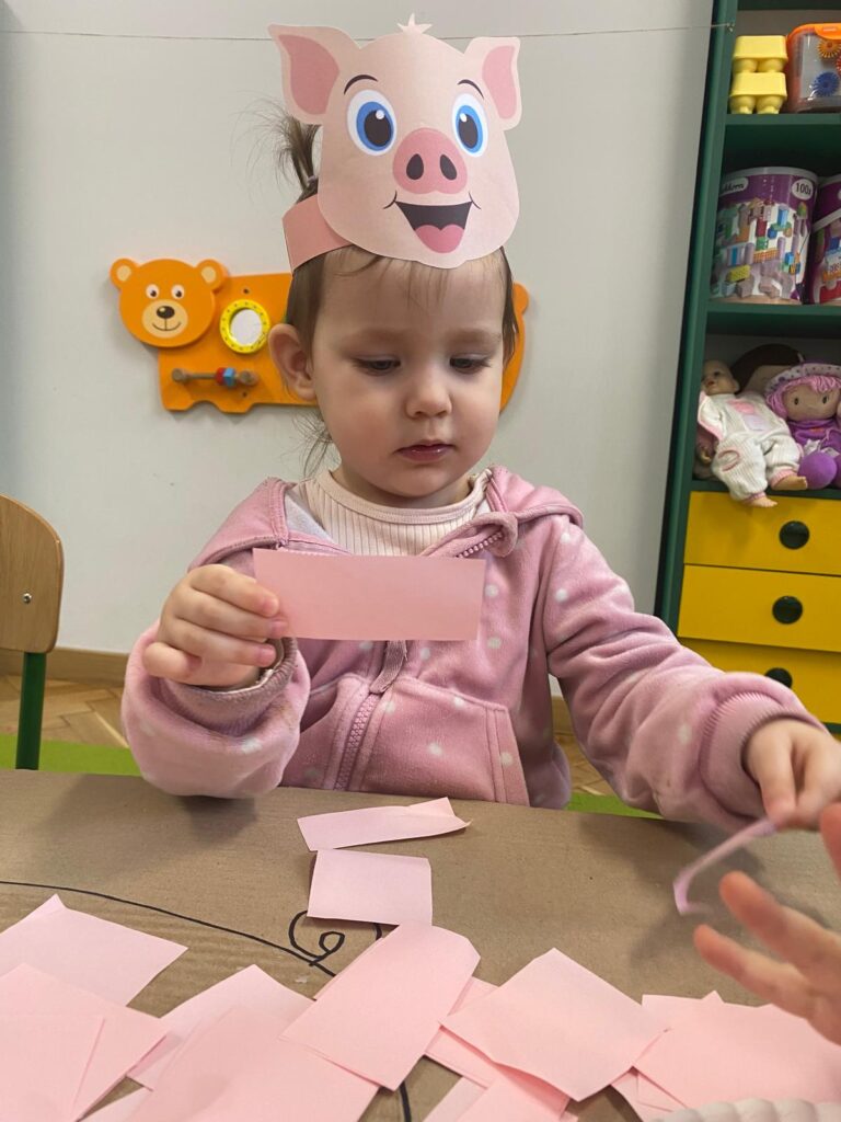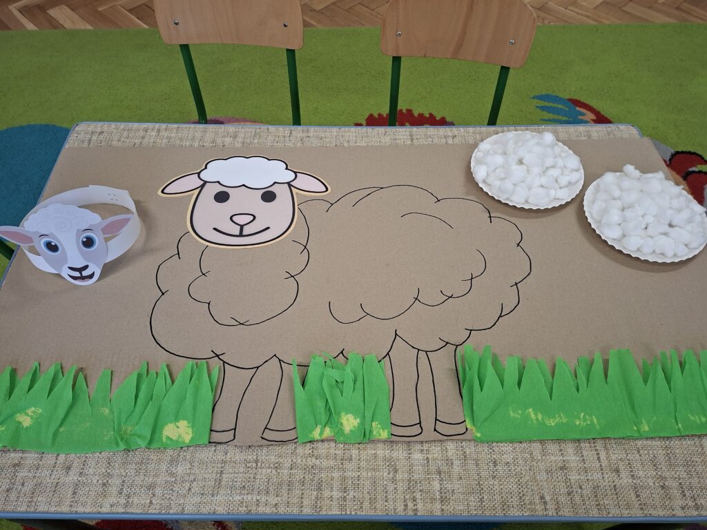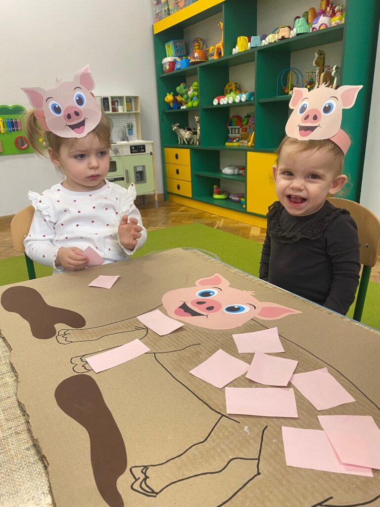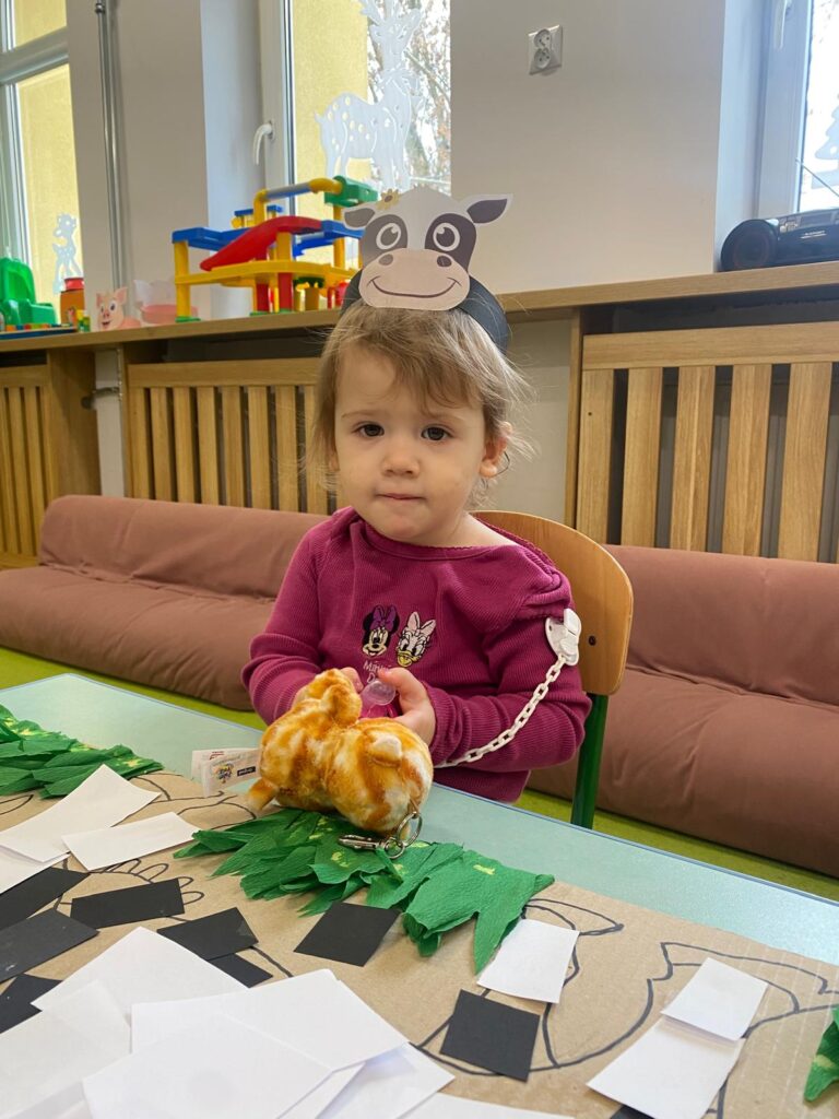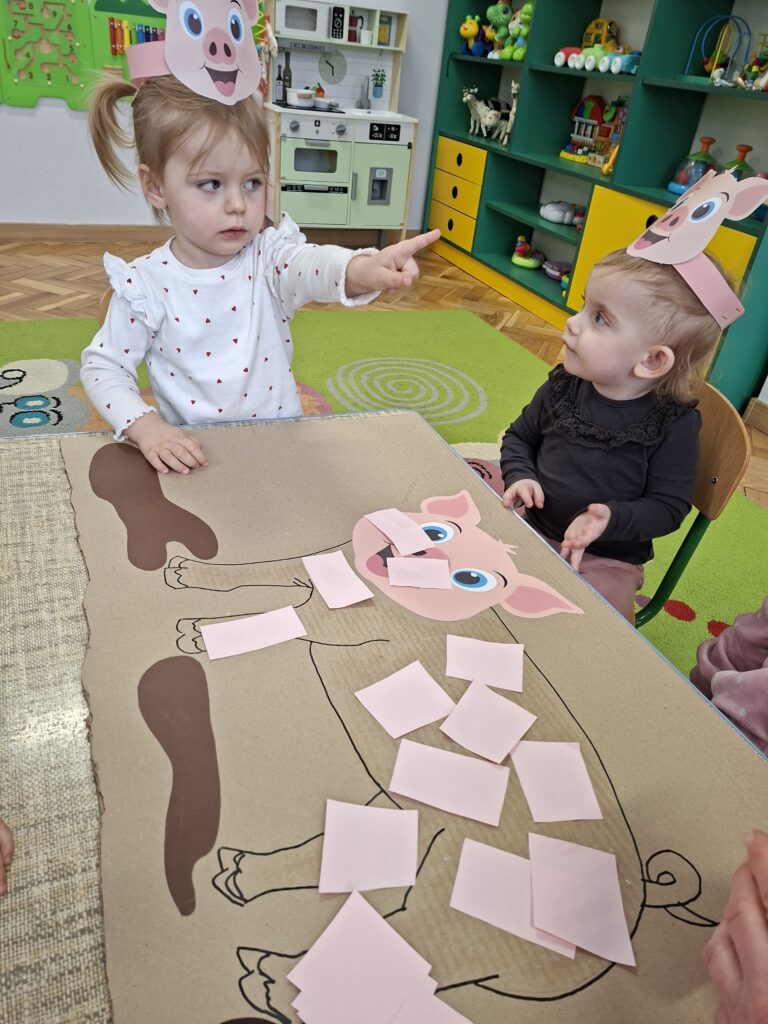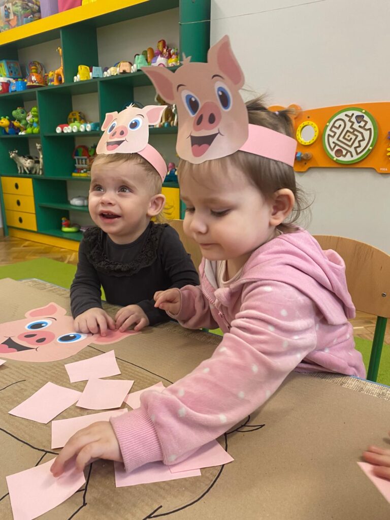 Co się u nas działo?! Odwiedziły nas krówka, owieczka i świnka… Rozmawialiśmy o zwierzętach mieszkających na wsi. Poznaliśmy ich nazwy, wygląd i głosy, które naśladowaliśmy (ćwiczenia do rozwoju mowy). Wykonaliśmy też śliczne prace plastyczne (malowanie farbą i wyklejanki – rozwijaliśmy sprawność manualną naszych rączek ). Te dni dały nam dużo radości i świetnie się bawiliśmy.