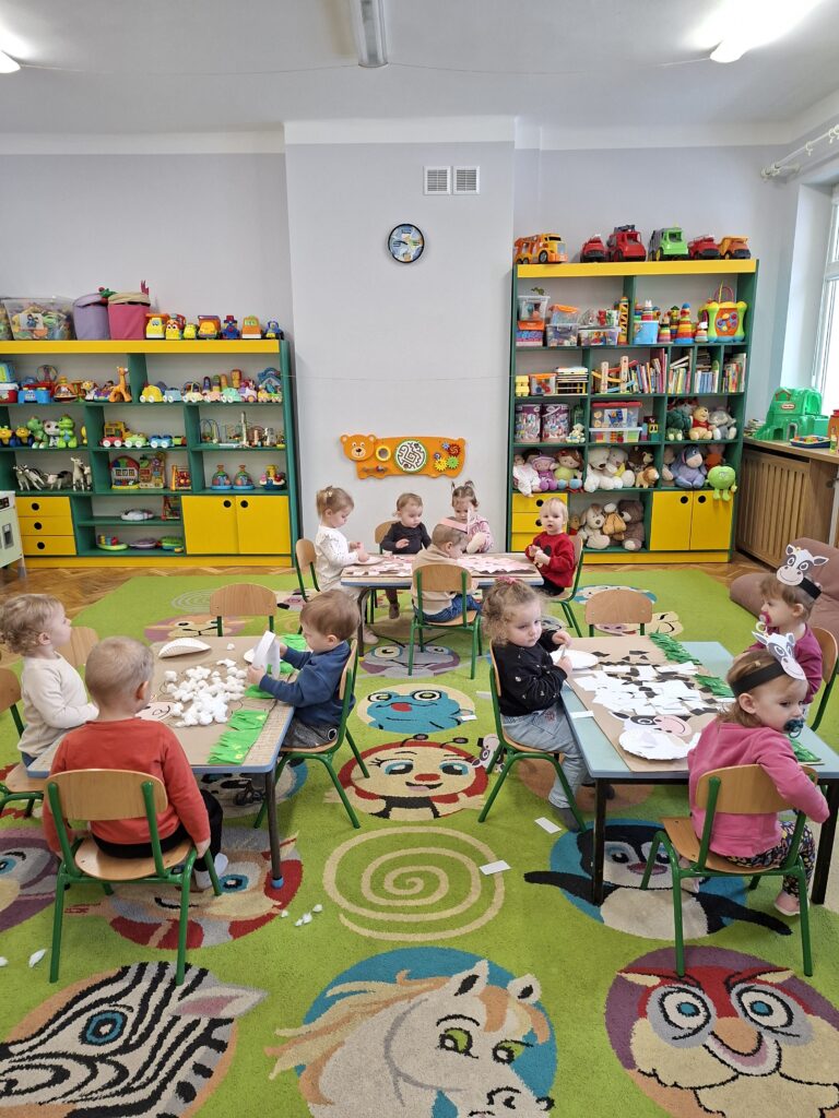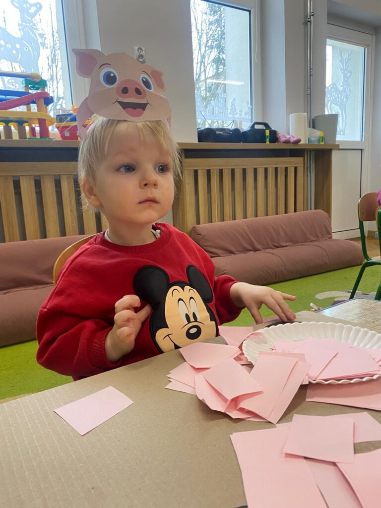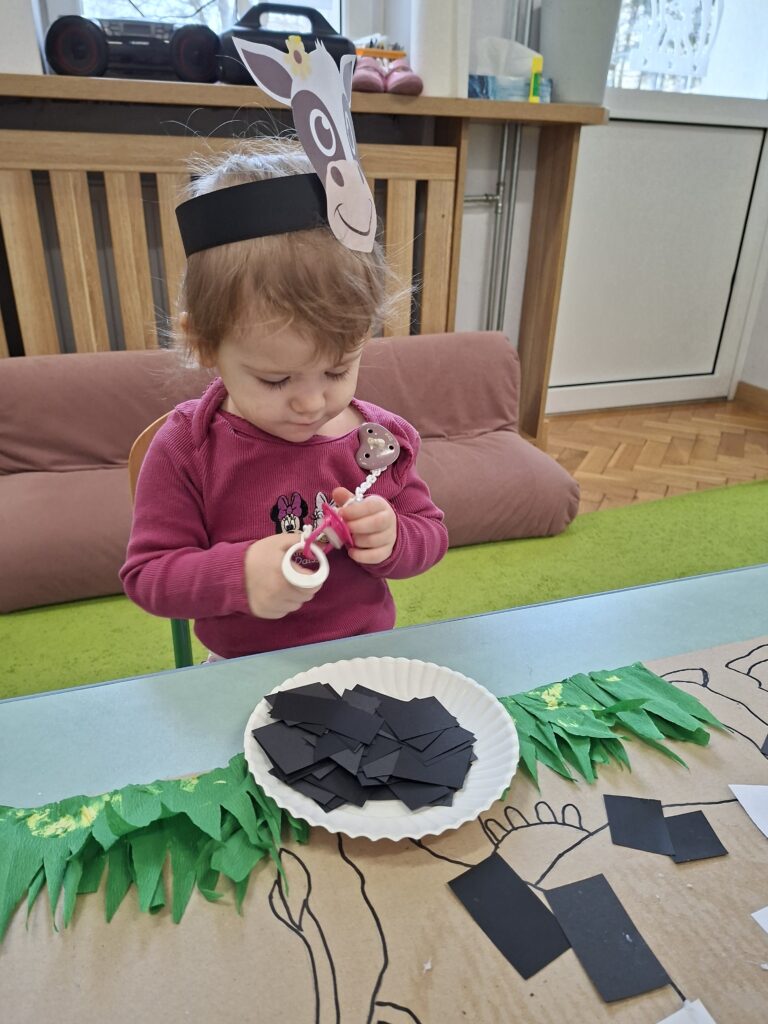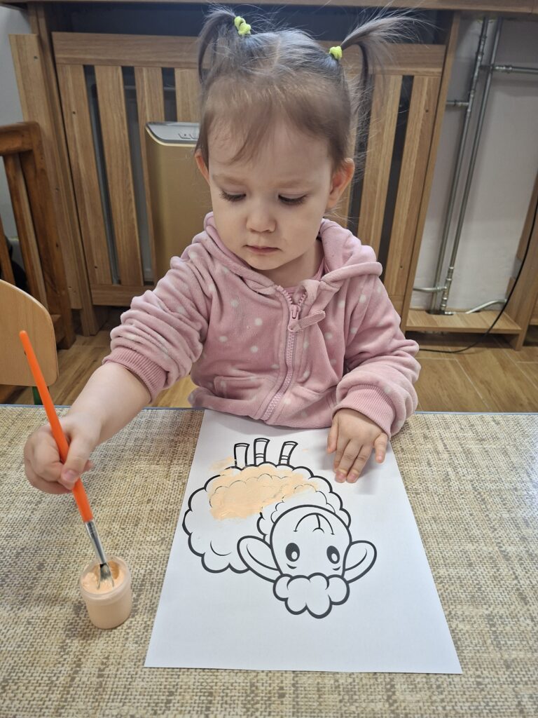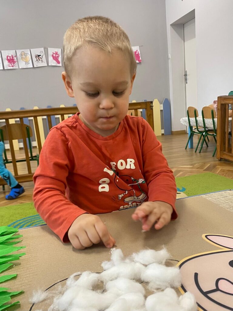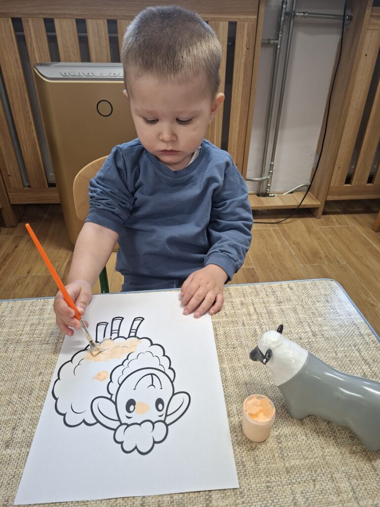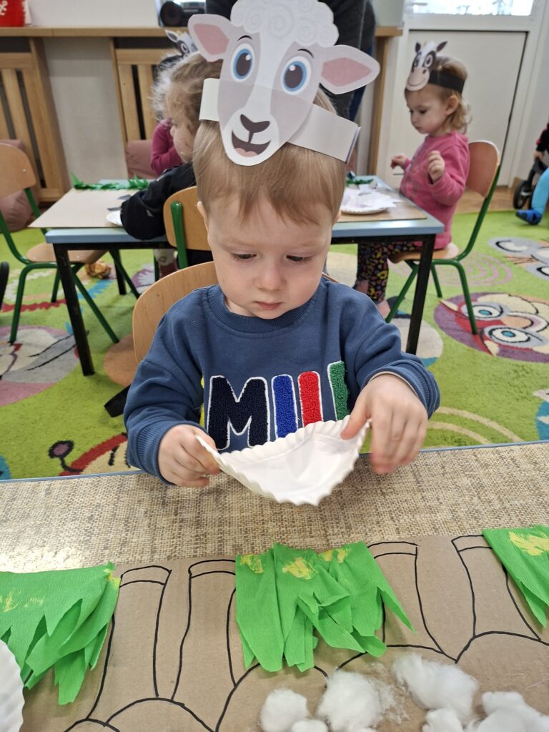 Co się u nas działo?! Odwiedziły nas krówka, owieczka i świnka… Rozmawialiśmy o zwierzętach mieszkających na wsi. Poznaliśmy ich nazwy, wygląd i głosy, które naśladowaliśmy (ćwiczenia do rozwoju mowy). Wykonaliśmy też śliczne prace plastyczne (malowanie farbą i wyklejanki – rozwijaliśmy sprawność manualną naszych rączek ). Te dni dały nam dużo radości i świetnie się bawiliśmy.