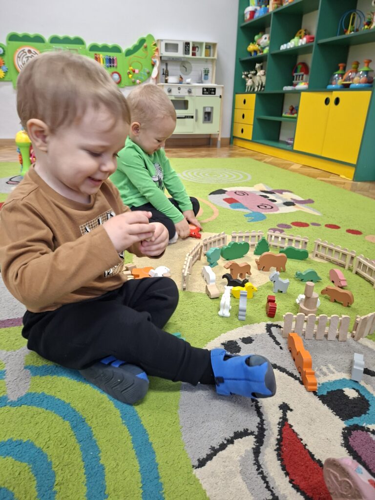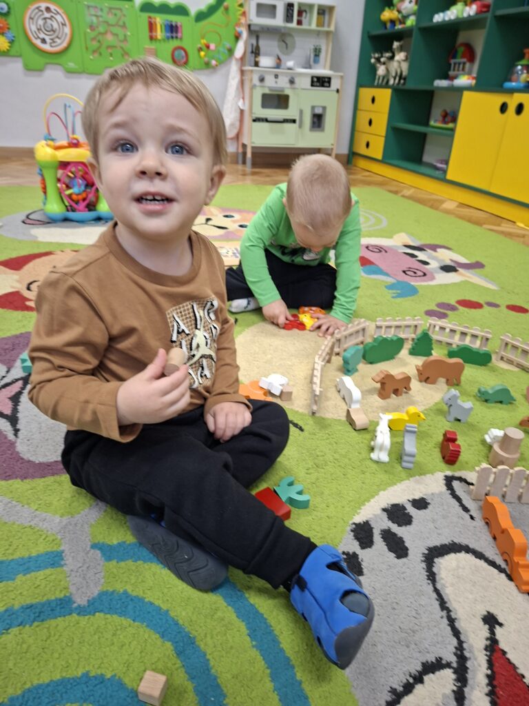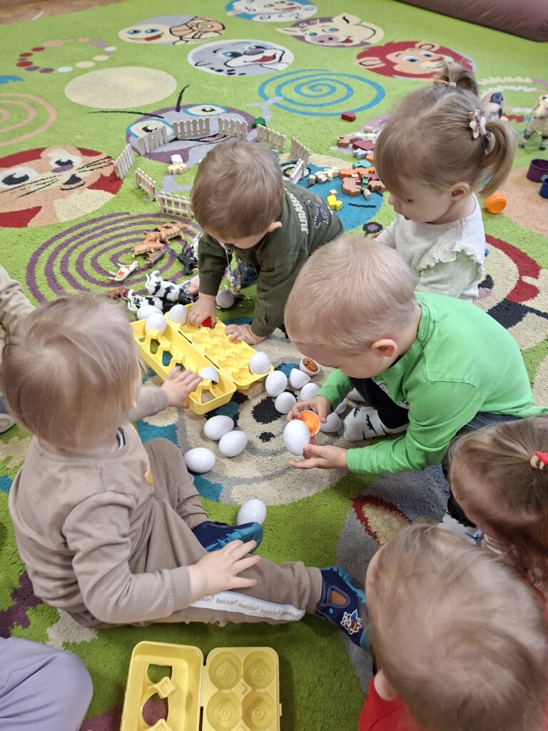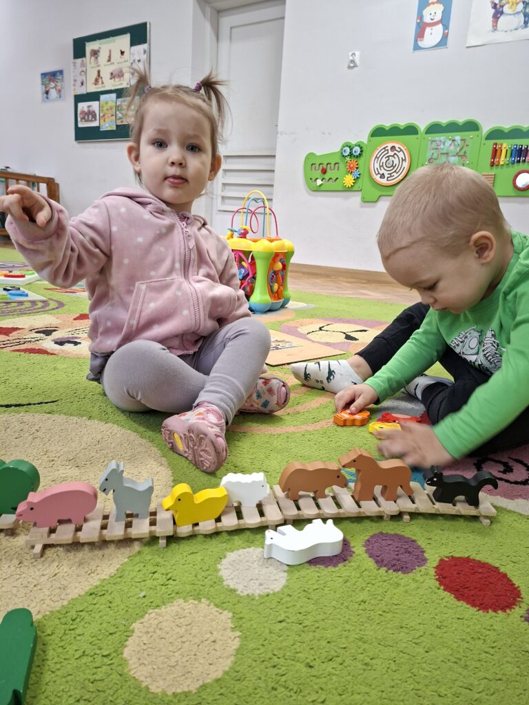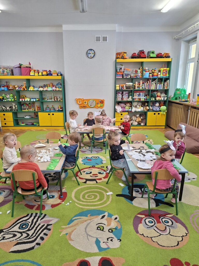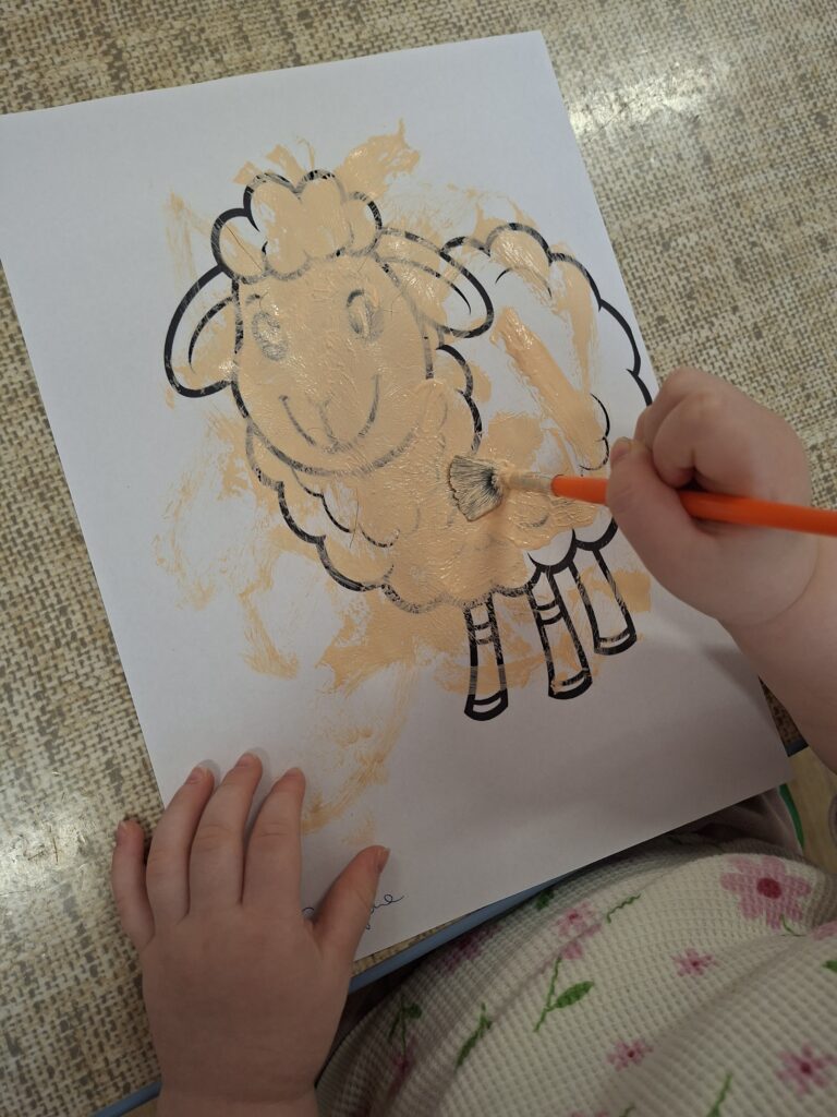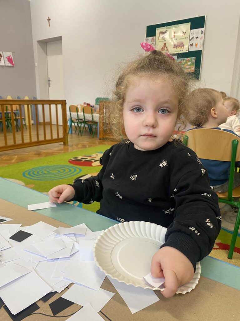 Co się u nas działo?! Odwiedziły nas krówka, owieczka i świnka… Rozmawialiśmy o zwierzętach mieszkających na wsi. Poznaliśmy ich nazwy, wygląd i głosy, które naśladowaliśmy (ćwiczenia do rozwoju mowy). Wykonaliśmy też śliczne prace plastyczne (malowanie farbą i wyklejanki – rozwijaliśmy sprawność manualną naszych rączek ). Te dni dały nam dużo radości i świetnie się bawiliśmy.