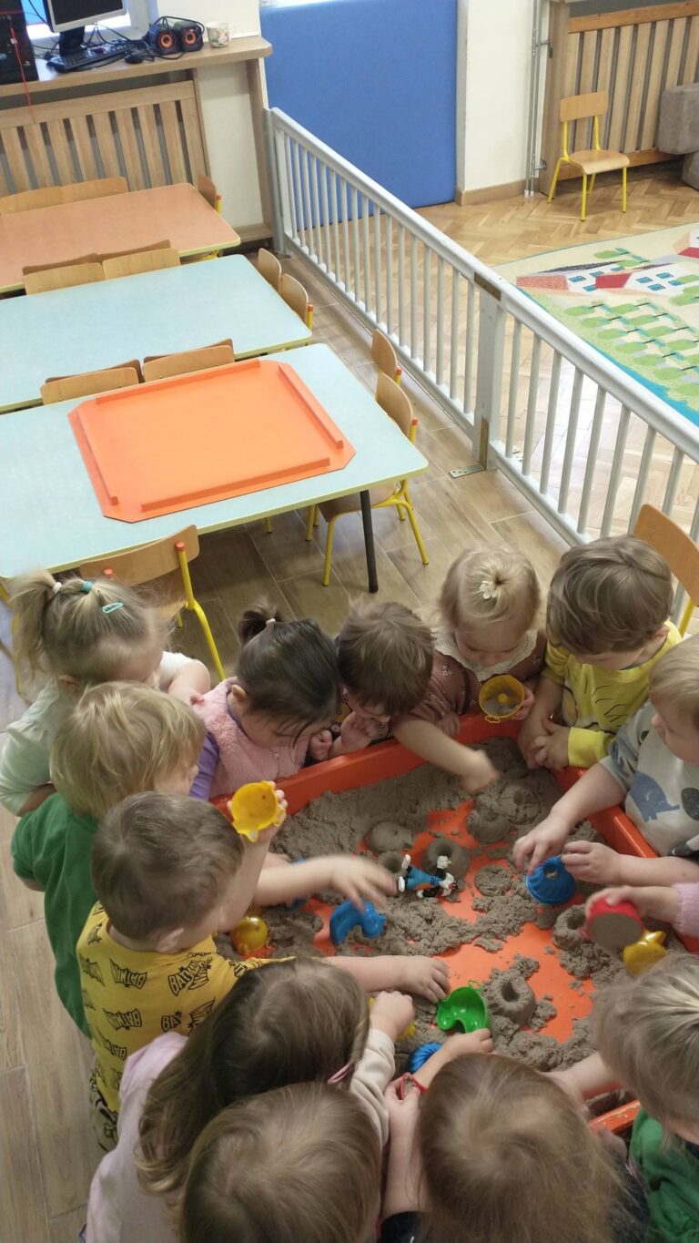 „Małe rączki, wielka kreatywność – zabawy z piaskiem kinetycznym rozwijają wyobraźnię i motorykę małą.” „Ugniatanie, przesypywanie i lepienie – sensoryczna przygoda z piaskiem kinetycznym.” „Poznajemy świat przez dotyk – zabawy sensoryczne z piaskiem kinetycznym.”
